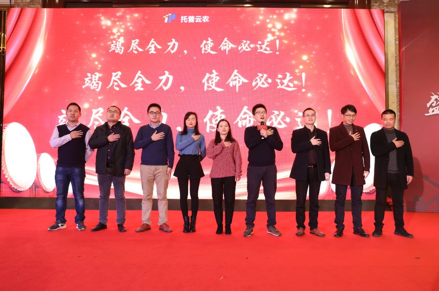 在陳董事長慷慨激昂的發(fā)言之后,托普云農(nóng)銷售團(tuán)隊(duì)以及信息化團(tuán)隊(duì)上臺進(jìn)行誓師儀式,他們元?dú)鉂M滿,氣宇軒昂,對來年的任務(wù)整裝待發(fā),胸有成竹!