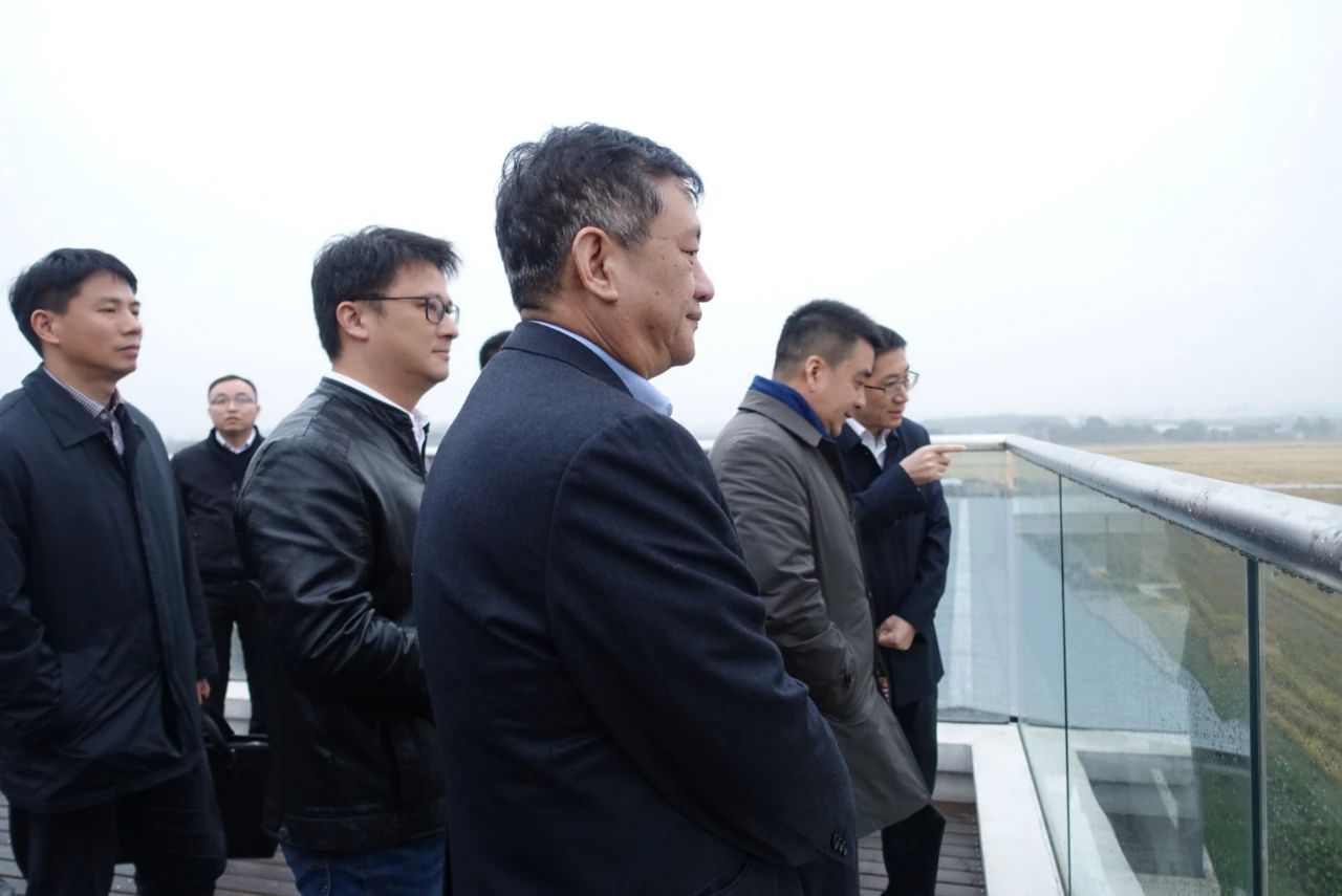 劉院長(zhǎng)一行登上觀景平臺(tái)查看農(nóng)田情況