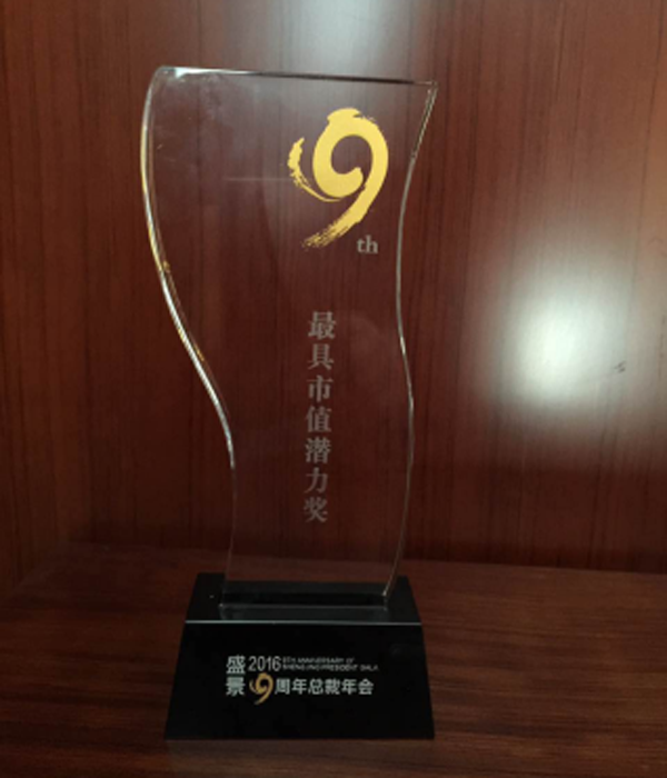 2016年5月25日,由盛景網聯集團主辦的“2016年度盛景十大市值潛力獎”頒獎儀式在京舉行。浙江托普云農科技股份有限公司(股票代碼:833692)憑借優厚的技術、資源優勢和良好的經營業績,榮膺此獎項。北京世紀國源科技股份有限公司、內蒙古顯鴻科技股份有限公司等其他9家公司均榜上有名。