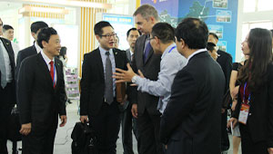 農交會期間,農業部余欣榮副部長、農業部市場與經濟信息司王小兵副司長一行蒞臨托普展區參觀指導。余副部長表示,農業物聯網技術應用除了現有的系統及硬件以外,還要與射頻技術緊密結合,提高物聯網的科技含量。屈冬玉副部長和斯洛文尼亞副總理一行也蒞臨托普展區,并與陳渝陽總經理親切交談。雙方就農業物聯網的研發推廣以及落地應用等問題進行交流。