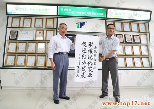 圖為:陳部長為托普儀器題下十二字勉勵之語:助推現(xiàn)代農(nóng)業(yè),促進行業(yè)發(fā)展