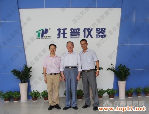 圖為:陳耀邦部長(中)、托普儀器陳渝陽總經(jīng)理(右)、朱旭華副總經(jīng)理(左)合影
