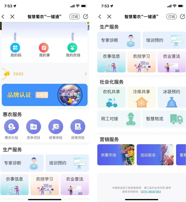 應用已經在“浙里辦”、“浙政釘”上線。截至目前,注冊用戶10307人,累計服務6470人次,提供涉農咨詢服務1132次、社會化服務1910次。這個全國首創的葡萄產品線上品牌管理,已經輔助100家農戶獲得優質品牌授權,優質葡萄追溯碼賦碼2萬余次,助力優質浦江葡萄銷售5萬余斤,實現均價提高2元以上。