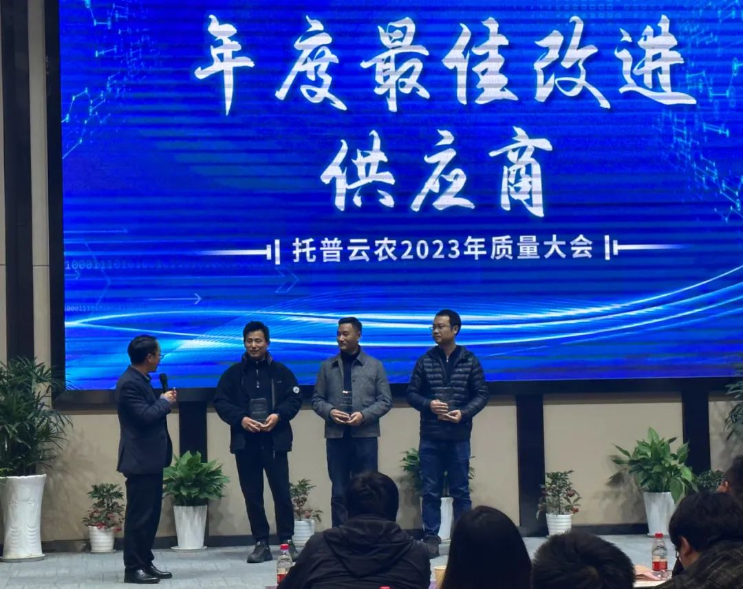 會上,智慧農(nóng)業(yè)研究院院長朱旭華還為去年質(zhì)量改進突出的供應商頒發(fā)了“年度最佳改進供應商獎”,并表示,期待未來雙方能繼續(xù)堅持長期主義,能有更多優(yōu)質(zhì)供應商攜手共創(chuàng)托普優(yōu)質(zhì)品牌。