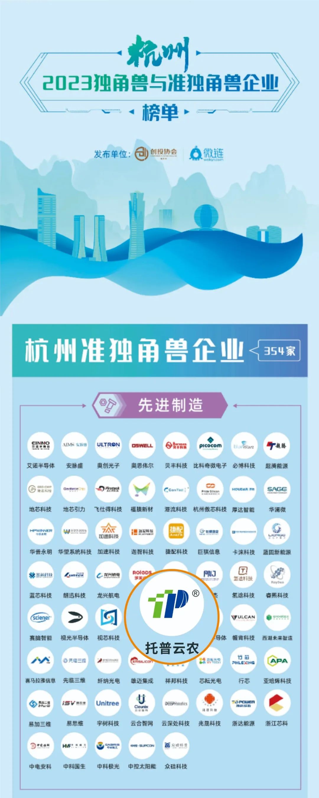 科技是第一生產(chǎn)力、人才是第一資源、創(chuàng)新是第一動(dòng)力。4月10日,由中國科協(xié)指導(dǎo),杭州市人民政府、民建浙江省委會、中國投資發(fā)展促進(jìn)會聯(lián)合主辦的第七屆萬物生長大會在杭州舉辦。會上,《2023杭州獨(dú)角獸&準(zhǔn)獨(dú)角獸企業(yè)榜單》正式發(fā)布,托普云農(nóng)再次榮登杭州準(zhǔn)獨(dú)角獸企業(yè)榜單!