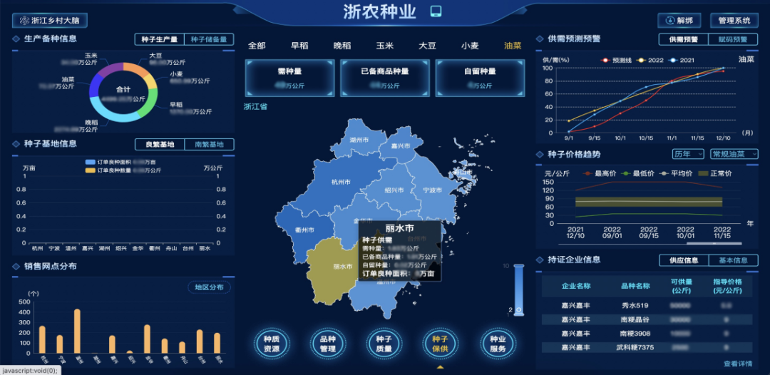 打造“浙農種業”數字化管理服務平臺,圍繞種業管理和種業服務兩條主線,構建種質資源、品種管理、種子質量、種子保供、種業服務五大場景,根據種子質量、生產經營許可、品種侵權、信息報送等判斷要素為種子企業賦碼,為政策扶持、行政執法等提供支持。