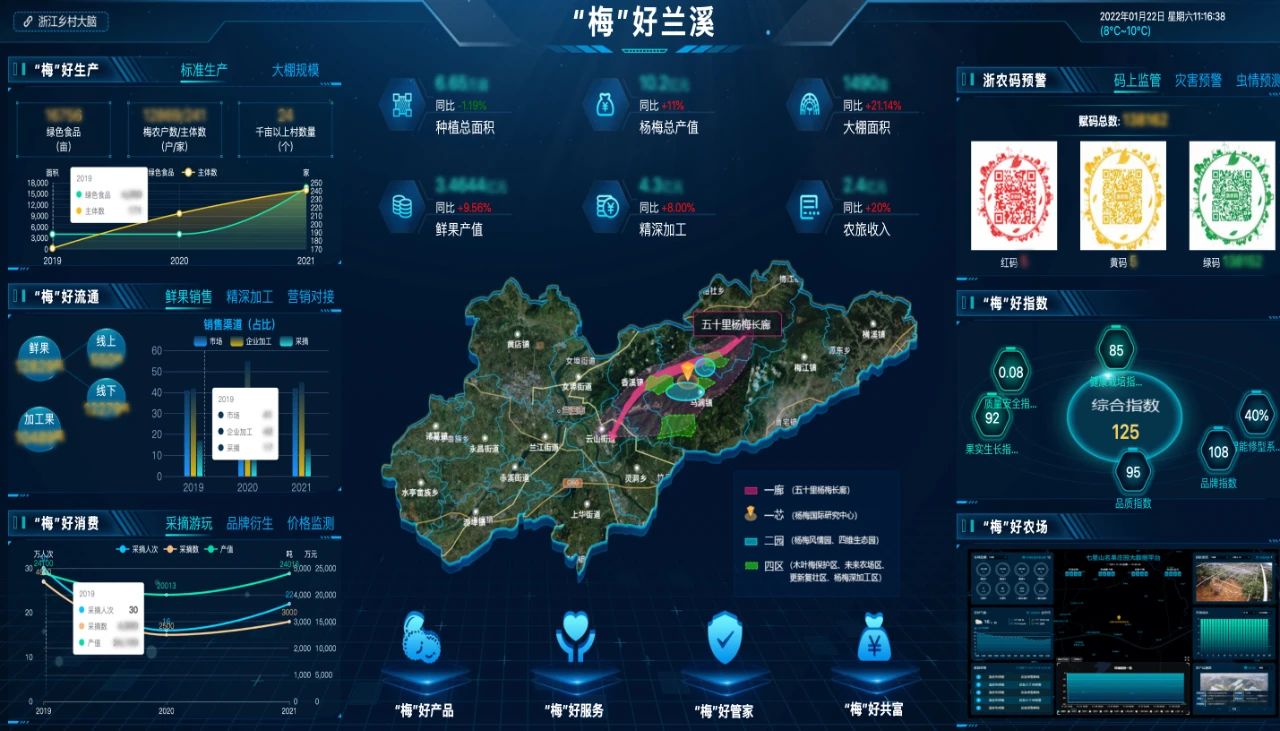 托普云農聚焦鄉村產業數字化,圍繞糧食、水果、茶葉等地方農業主導產業和特色產業,以產業共性需求為基礎,構建“產業大腦+未來農場”發展模式,深化數據與應用集成,通過“一腦集成”,驅動未來農場分布式、數字化、智能化生產。截至目前,已成功打造出楊梅產業大腦、葡萄產業大腦等多個鮮有成效的產業案例。在浙江金華蘭溪,托普云農以數字經濟為主線,以“4+2”為指導思想,圍繞梅農生產、流通、消費全鏈條的應用,通過構建“梅”好生產、“梅”好管家、“梅”好服務、“梅”好共富四大場景,建設“梅”好蘭溪楊梅產業大腦,全面提升楊梅產業收益和產品品質,實現蘭溪共同富裕。