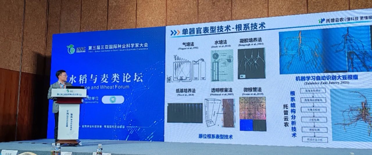 此次會議,中稻—托普數字農業研究中心、浙江托普云農科技股份有限公司(以下簡稱“托普云農”)共同參會,托普云農在水稻與麥類論壇上作《自動化表型解析技術在育種的應用》主題報告。