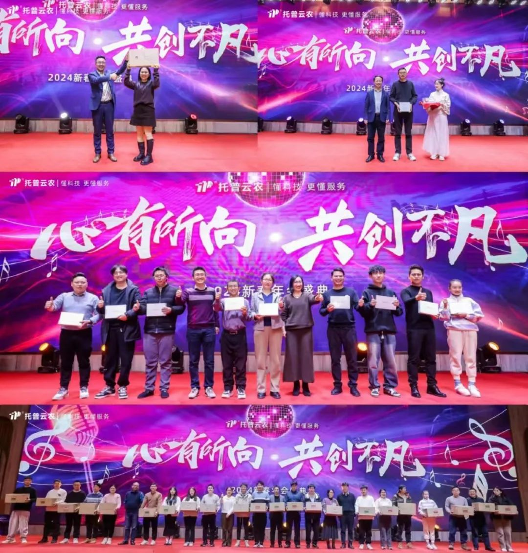 “百舸爭流,奮楫者先;中流擊水,勇進者勝”。在不平凡的2023年,托普云農涌現(xiàn)出一批先進典型。公司向2023年度表現(xiàn)優(yōu)異的個人和團隊頒發(fā)了最佳新人、優(yōu)秀員工、銷售精英、技術創(chuàng)新、服務之星、優(yōu)秀團隊等10余個獎項。以表彰的方式為優(yōu)秀員工及團隊加冕,向榜樣致敬、朝模范看齊!
