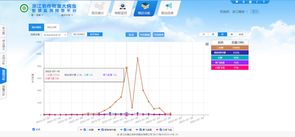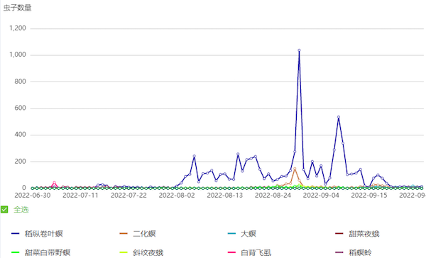 2022年8月末,受臺風(fēng)“軒嵐諾”影響,杭州市余杭區(qū)出現(xiàn)持續(xù)大風(fēng)和高濕天氣,托普云農(nóng)智能蟲情測報燈有效監(jiān)測到稻縱卷葉螟及二化螟蛾峰,當(dāng)?shù)剞r(nóng)業(yè)農(nóng)村局根據(jù)蟲害發(fā)生態(tài)勢,立即開展分品種、分區(qū)塊普查,結(jié)合系統(tǒng)調(diào)查結(jié)果,掌握防治適期,科學(xué)用藥,杜絕濫用藥。