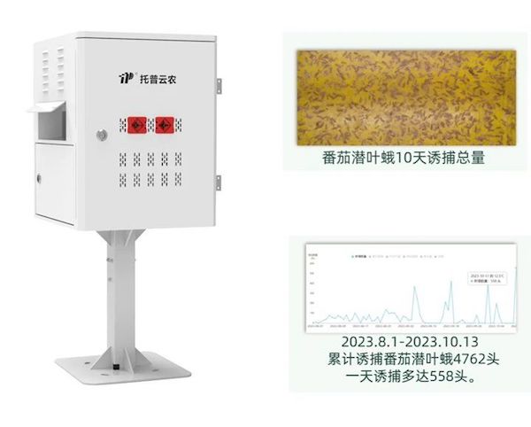 針對被列為國家一類農(nóng)作物害蟲的番茄潛葉蛾,托普云農(nóng)自主研發(fā)智慧性誘測報系統(tǒng),通過AI識別,平均識別準(zhǔn)確率超過85%,在做到實時監(jiān)測發(fā)生動態(tài)的同時,有效降低雌雄蟲交配繁殖機會,減少子代幼蟲的發(fā)生量;由于田間番茄潛葉蛾種群密度大,粘蟲板上經(jīng)常在短時間內(nèi)捕獲大量害蟲個體,并且其中包含其他害蟲,因此人工目測的調(diào)查方式不僅?耗時耗力?,而且容易影響數(shù)據(jù)準(zhǔn)確性,針對這個問題,托普云農(nóng)自主研發(fā)“數(shù)蟲”小程序,通過手機拍照即可對粘蟲板上的番茄潛葉蛾蟲體進(jìn)行快速識別、準(zhǔn)確計數(shù),幫助農(nóng)戶和技術(shù)人員快速、準(zhǔn)確、實時地了解害蟲的發(fā)生動態(tài)。