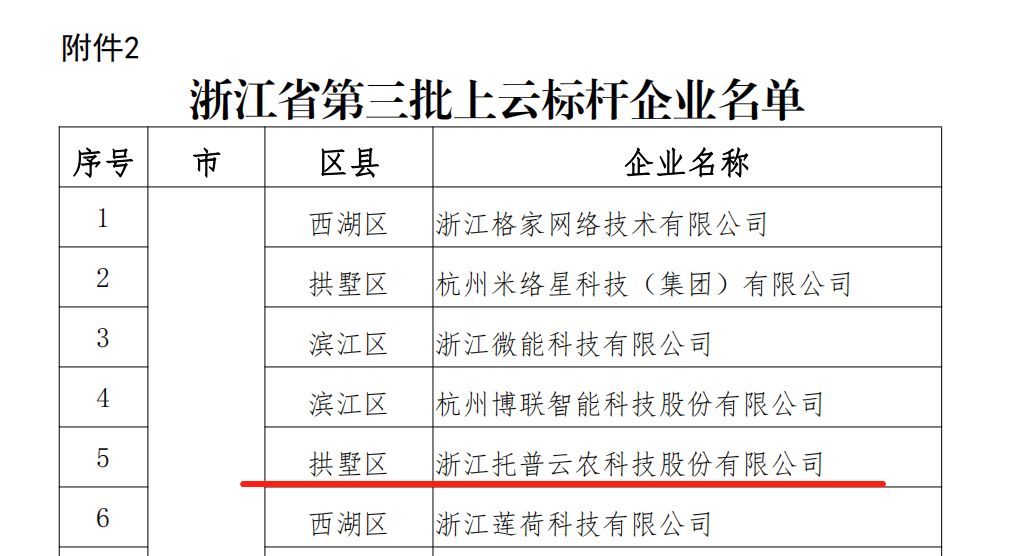 近日,浙江省經(jīng)濟(jì)和信息化廳公布了浙江省第三批行業(yè)云應(yīng)用示范平臺、第三批上云標(biāo)桿企業(yè)、第五批大數(shù)據(jù)應(yīng)用示范企業(yè)評審結(jié)果,托普云農(nóng)憑借較好的企業(yè)信息化基礎(chǔ)與成功的云應(yīng)用成果,經(jīng)過層層選拔,入選第三批上云標(biāo)桿企業(yè)名單。