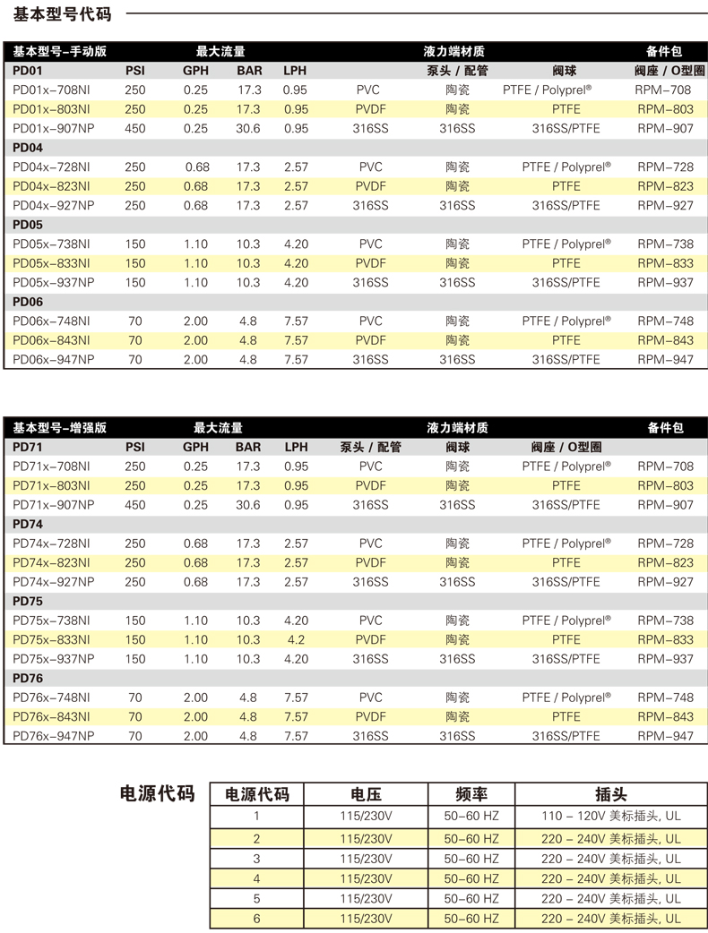 米頓羅美國進口電磁泵:PD716-708NI、PD716-803NI、PD716-907NP、PD746-728NI、PD746-823NI、PD746-927NP、PD756-738NI、PD756-833NI、PD756-937NP、PD766-748NI、PD766-843NI、PD766-947NP等PD系列電磁隔膜計量泵