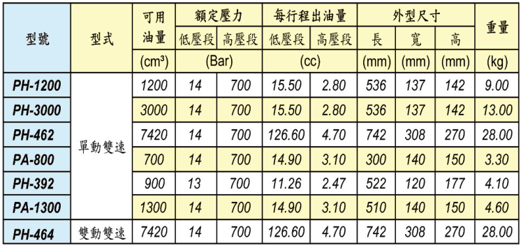 IHP液壓泵PH/PA系列技術(shù)參數(shù):