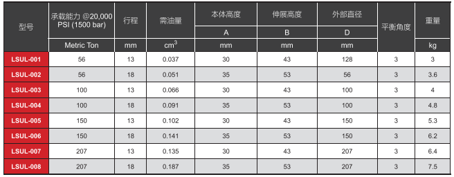 拉弗泰克LSUL型號表: